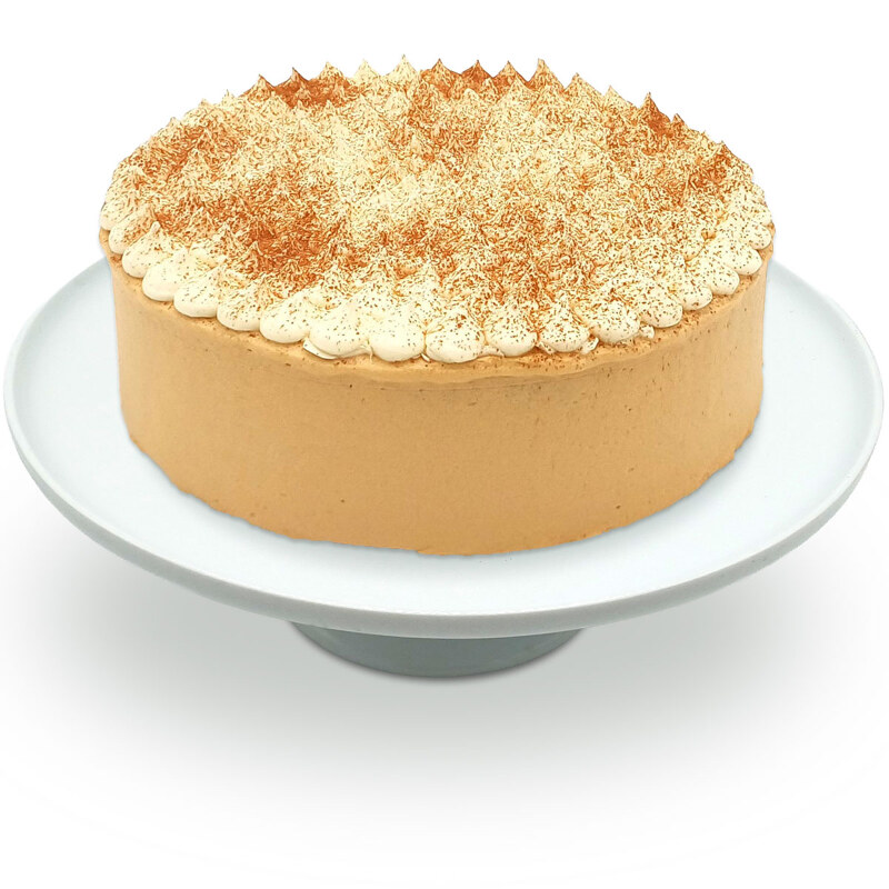 Our Cinnamon & Caramel Cake is made with layers of fluffy cinnamon infused vanilla sponge with a caramel filling and finished with caramel cheese cream fosting on the side and cream cheese frosting on top with dustings of cinnamon. Perfect with a cup of tea!